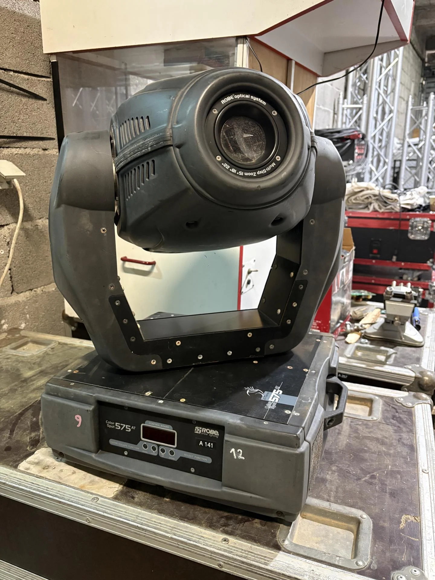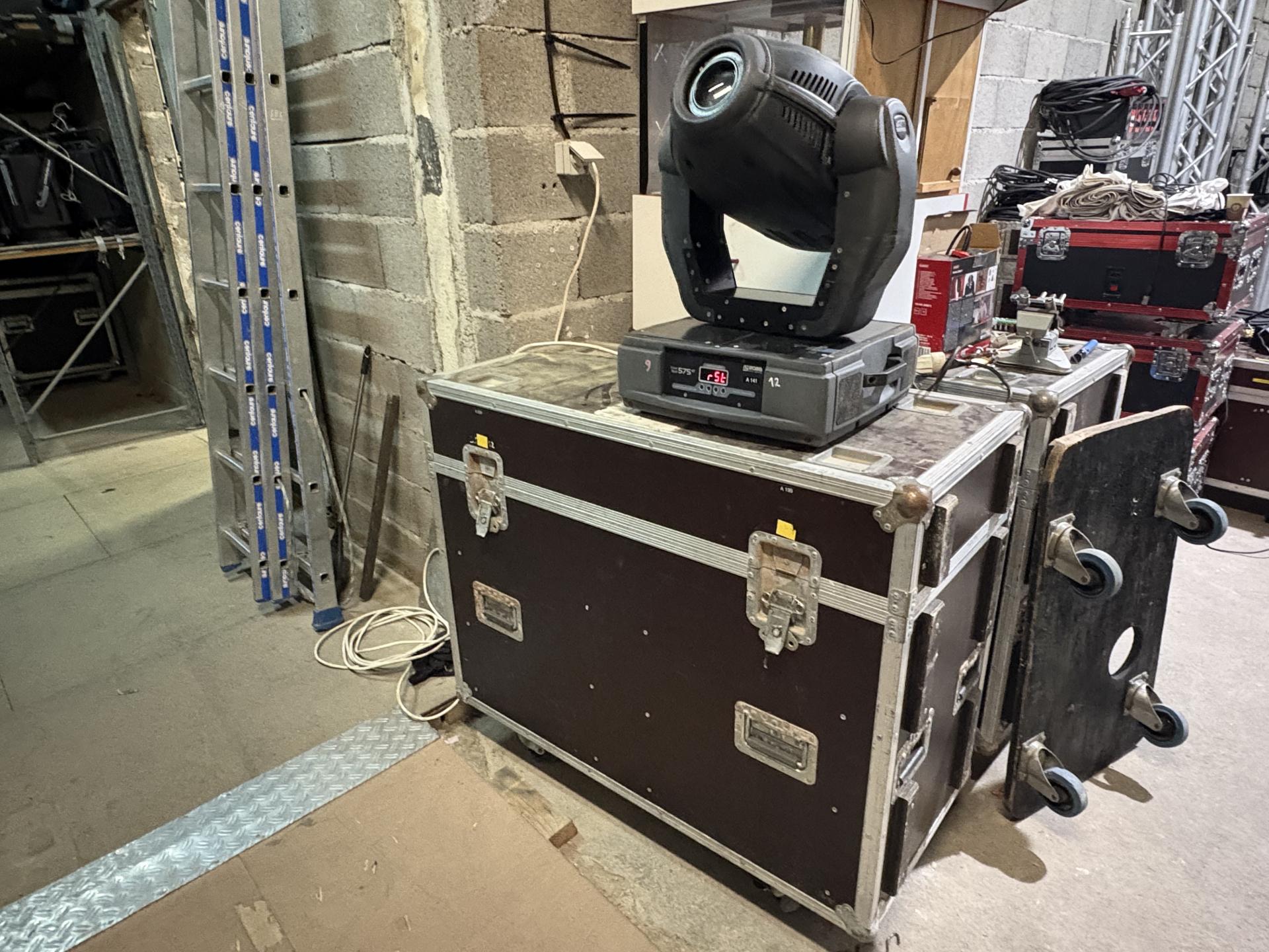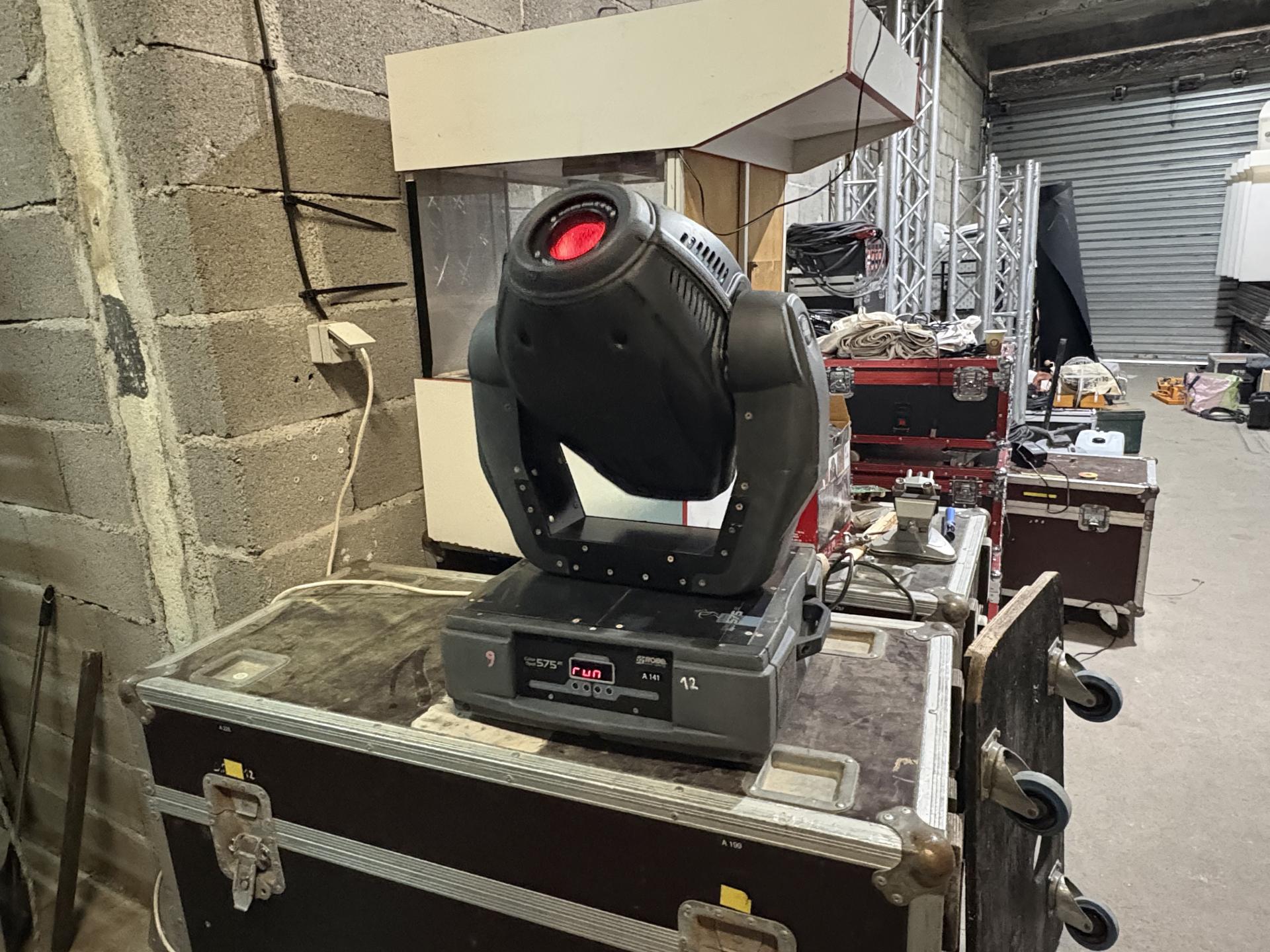 Lot de 2 projecteurs robotisés ROBE COLORSPOT 575AT en flight case avec crochets et lampes 575HMI de rechange.