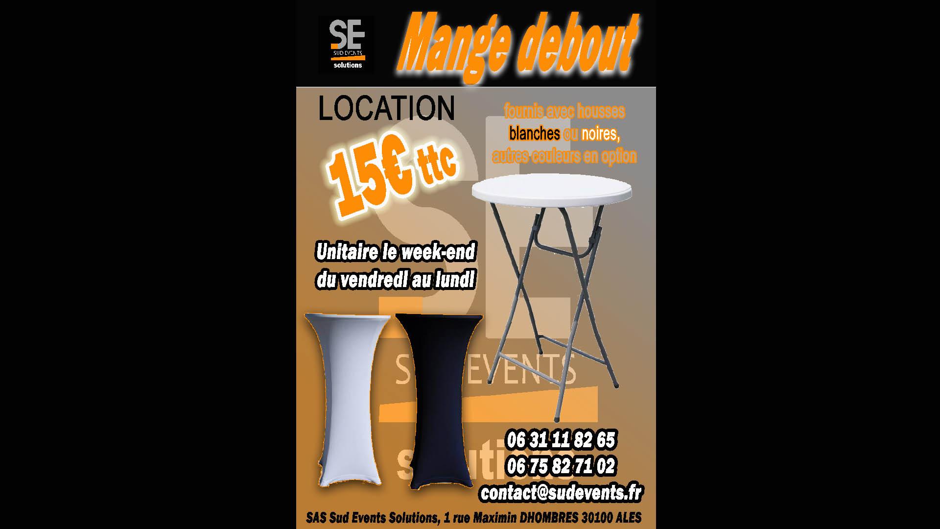 Ajoutez une touche d'élégance à vos coktail et réceptions on optant pour la location de nos mange debout diamètre 80cm fournis avec housses lycra blanches ou noires, d'autres couleurs sont disponibles en option.